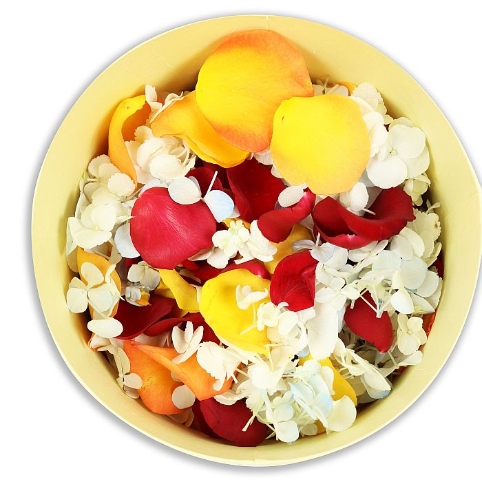 Our Blissful Garden Bouquet is a stunning collection of vibrant hydrangea, rose, and chrysanthemum petals, thoughtfully arranged to create a unique and beautiful display. Perfect for expressing love and joy.
